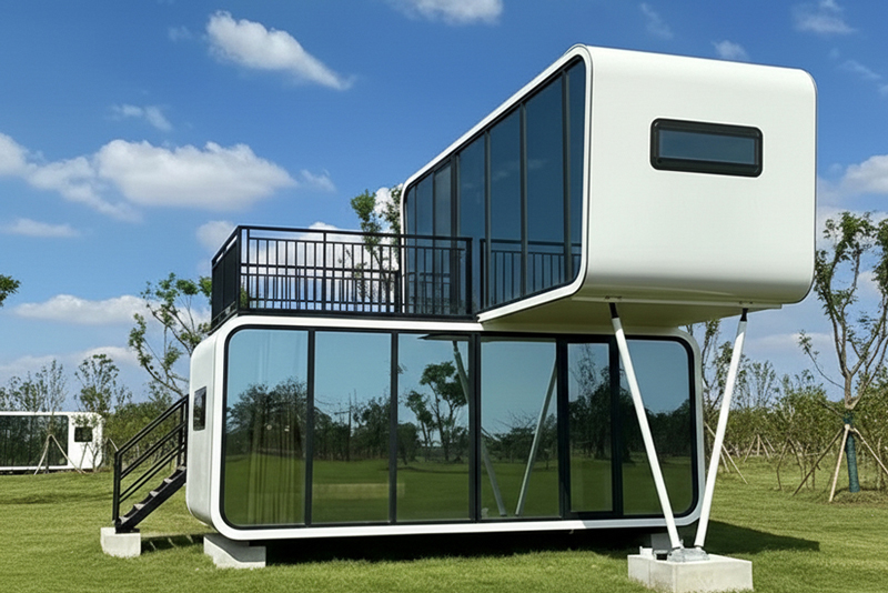 A5 采用创新的双层结构设计,内部配备旋转楼梯。上下分层的动静分区,带来别墅般的居住体验,是营地中的地标性建筑。